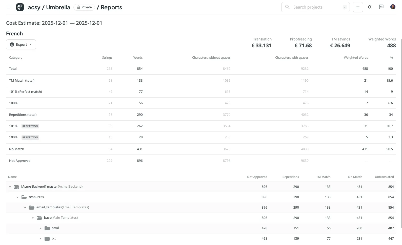 Track how TM and AI reduce spend by eliminating duplicate work.